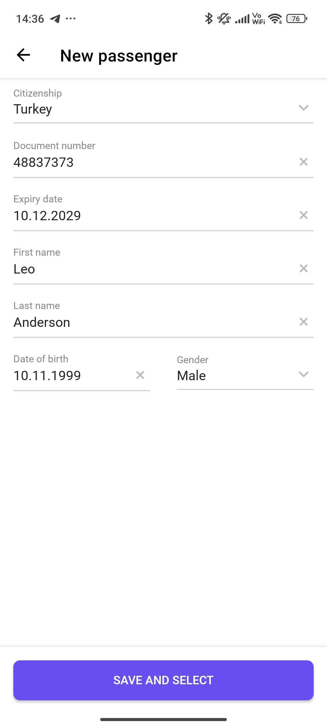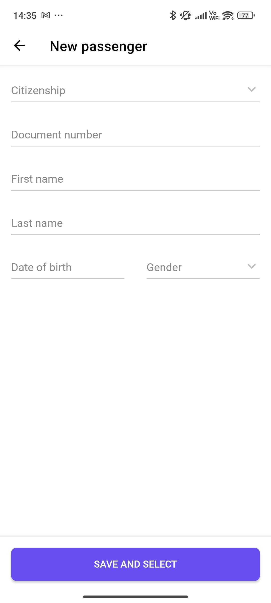 - There is an option to select from already saved passenger details or you can select "Add a new passenger" at the bottom of the screen